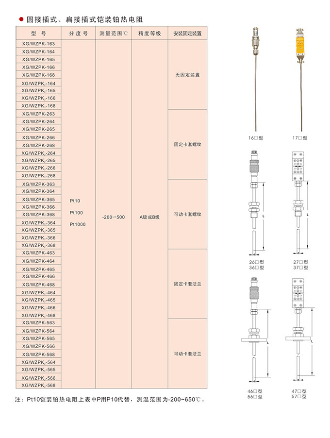圓接插式(扁接插式)鎧裝鉑熱電阻: