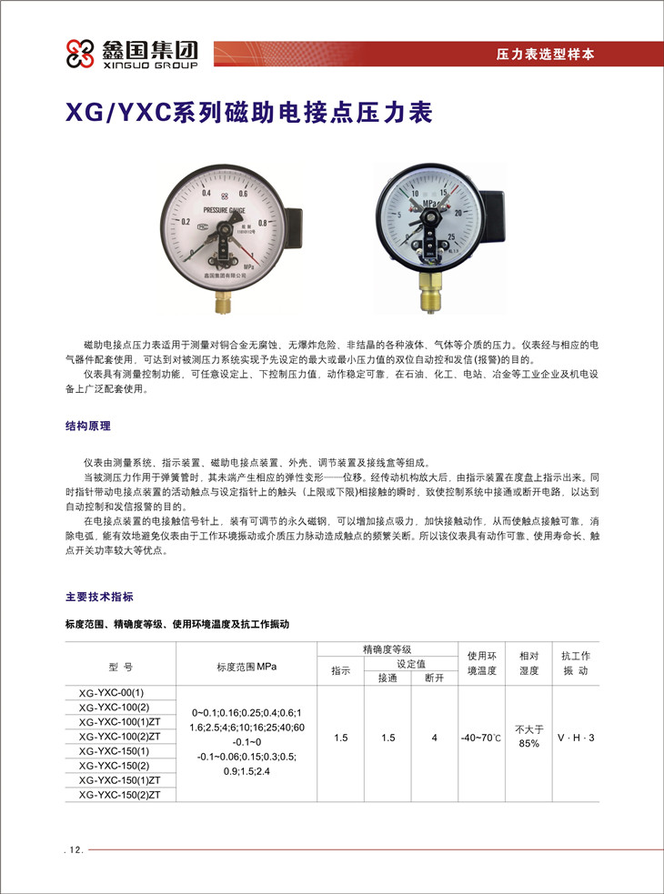 磁助電接點壓力表具有測量控制功能,可任意設定上、下控制壓力值,動作穩定可靠,在石油、化工、電站、冶金等工業企業及機電設備上廣泛配套使用。