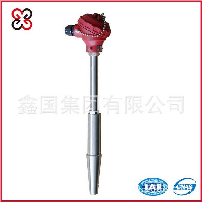 高溫高壓熱電偶(熱電阻),其整體鉆孔保護套管采用焊接的方法與主設備固定密封,它可用來測量電廠管路的蒸汽或水溫。根據所使用的壓力、溫度和流速的差異,具有兩種相應的結構和安裝方式,供用戶選擇。本熱電偶(